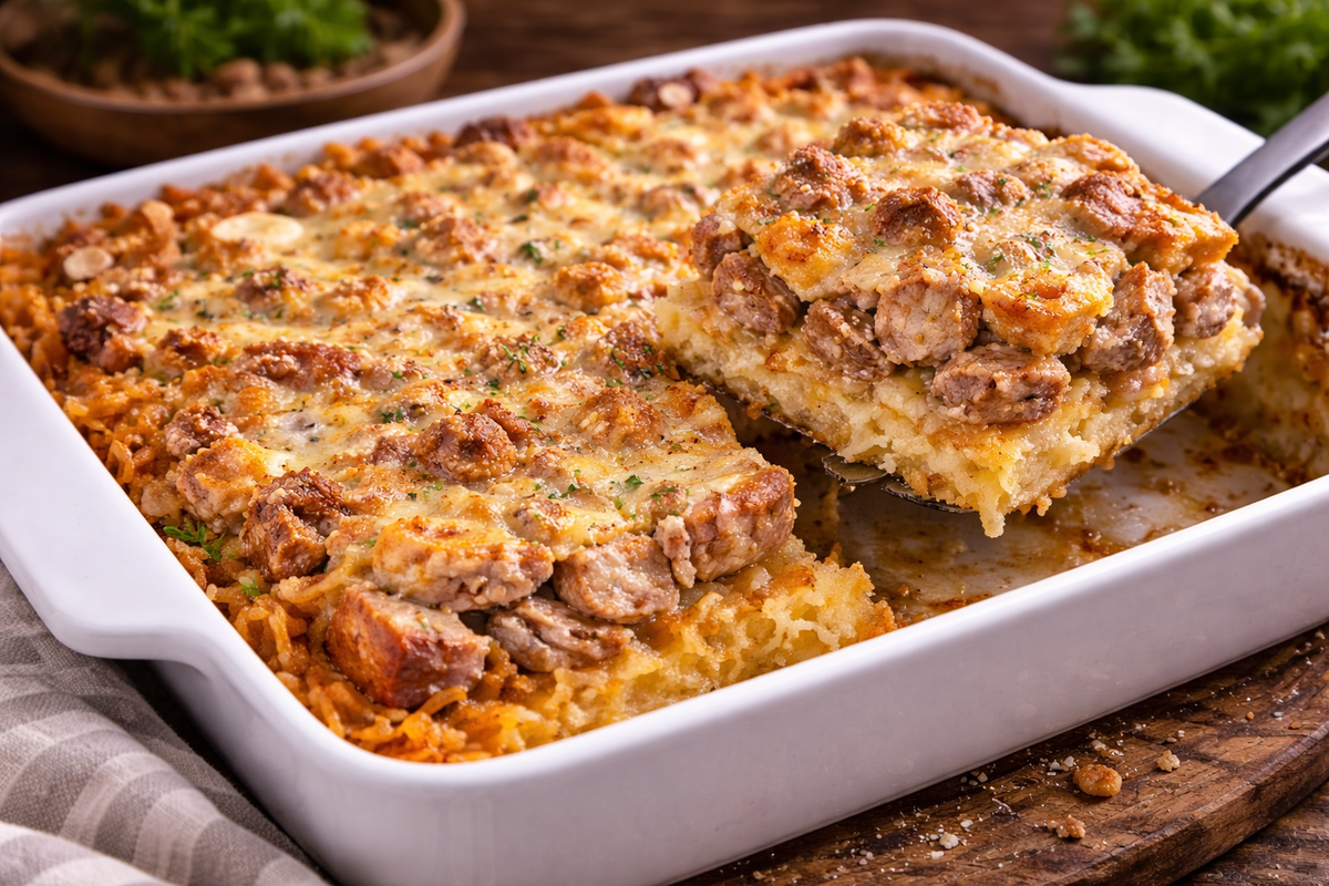 Это тот самый рецепт, который выручает и в будни, и когда нужно накормить всю семью без лишней суеты. Никаких сковородок, гарниров и сложных соусов — всё собирается слоями и запекается в одном противне, как сытный домашний пирог. Картошка пропитывается мясным соком, становится сочной и ароматной, а свинина получается мягкой и нежной. Просто, по-белорусски и очень вкусно.