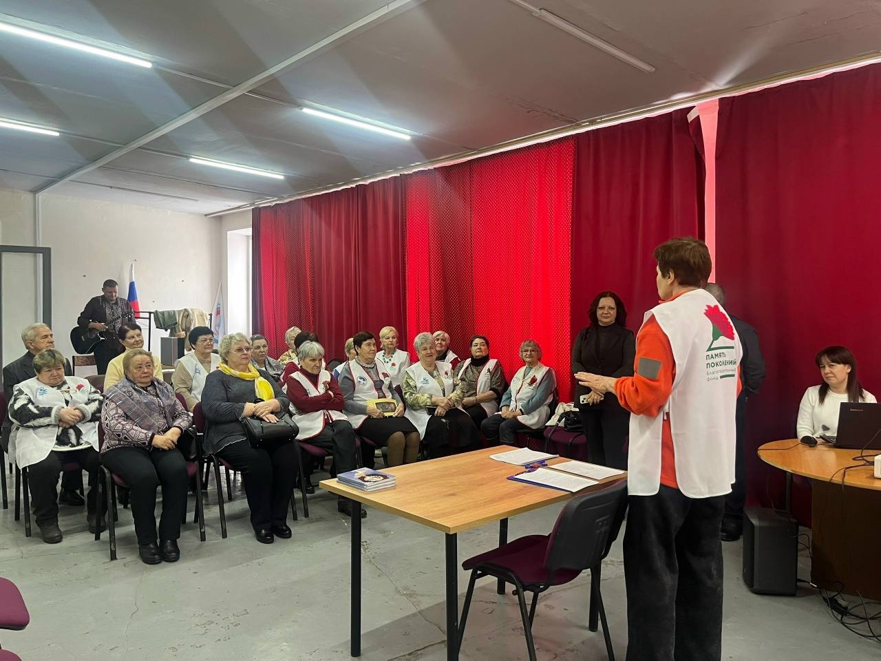 Председатели ТИК Мценского района и города Мценска Виктор Перловский и Лилия Петрова провели для серебряных волонтеров деловую игру «Выборы любимой военной песни». Участники не только познакомились с историей создания семи композиций и исполнили их, но и проголосовали по всем правилам избирательного процесса.