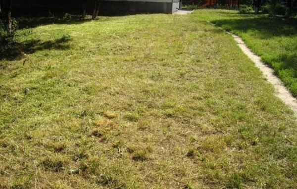 - Удобрить почву. Применение комплексов удобрений поможет траве вернуть яркий цвет.