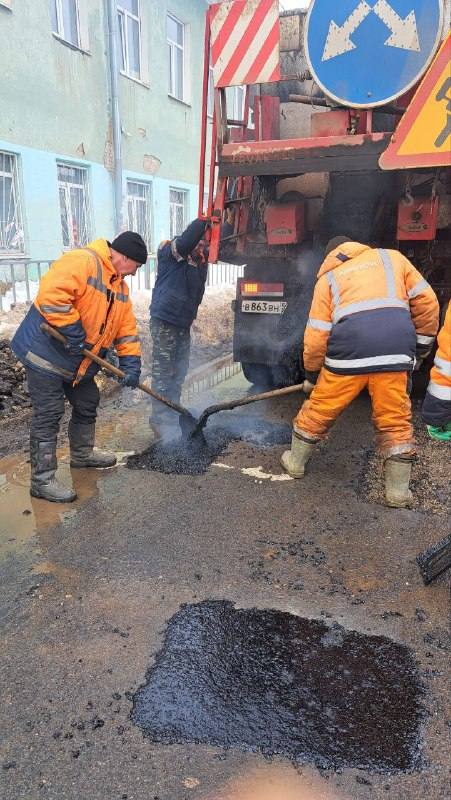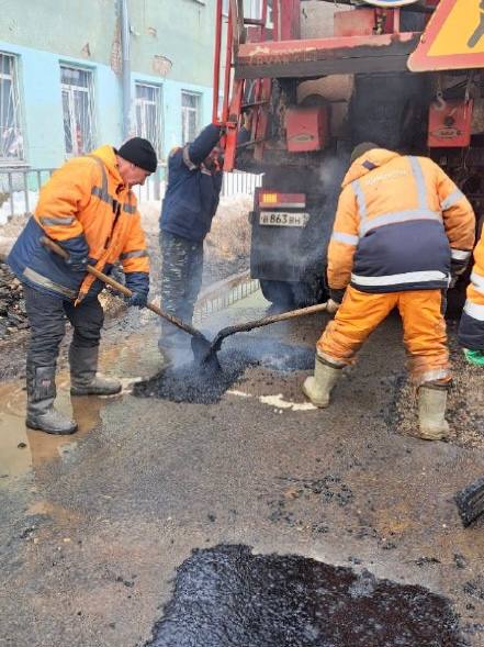 Как рассказали в учреждении, температура воздуха и погодные условия позволяют проводить ямочный ремонт дорожного полотна литым асфальтом с помощью термос-бункера «Вулкан».