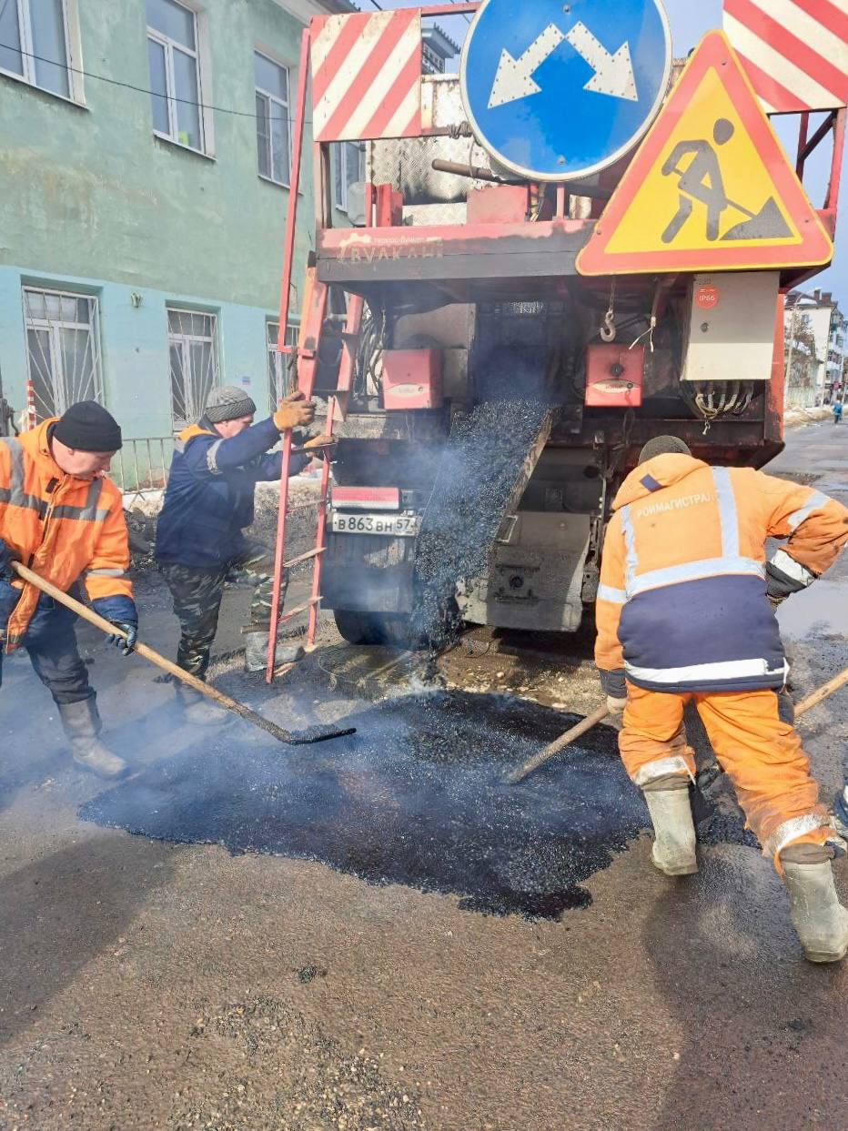 В Орле продолжается ямочный ремонт литым асфальтом