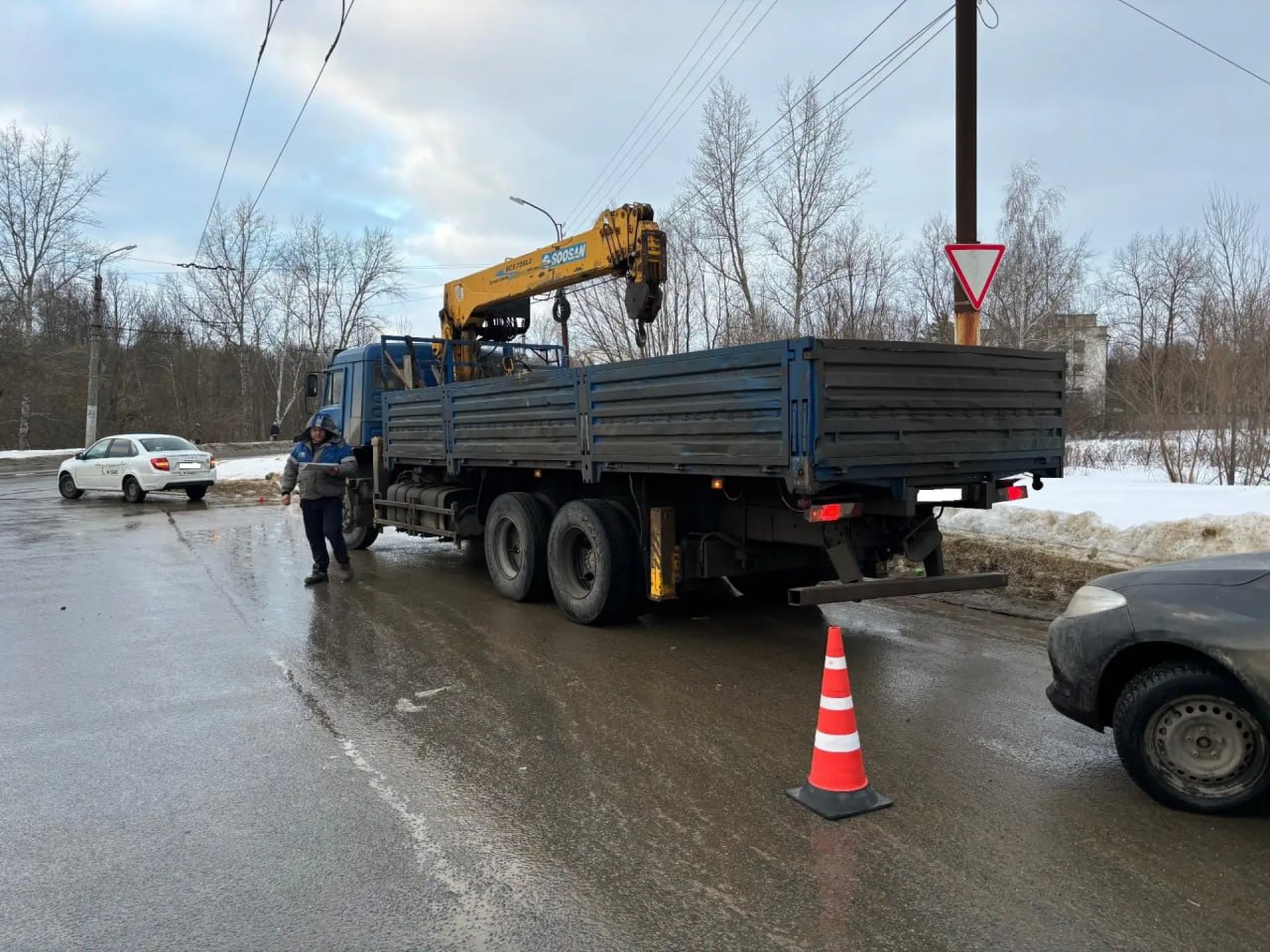 Водитель на «Ладе Гранте», двигался по ул. Рощинской со стороны Московского шоссе. При выезде на перекресток не уступил дорогу Камазу.