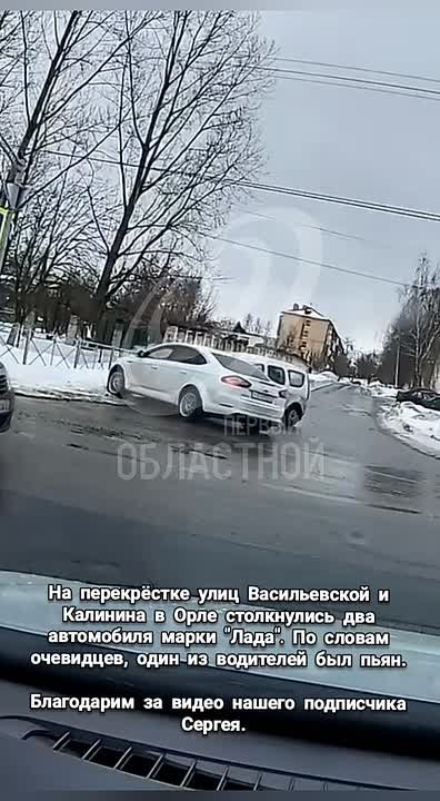 На перекрёстке улиц Васильевской и Калинина в Орле столкнулись два автомобиля марки "Лада". По словам очевидцев, один из водителей был пьян.