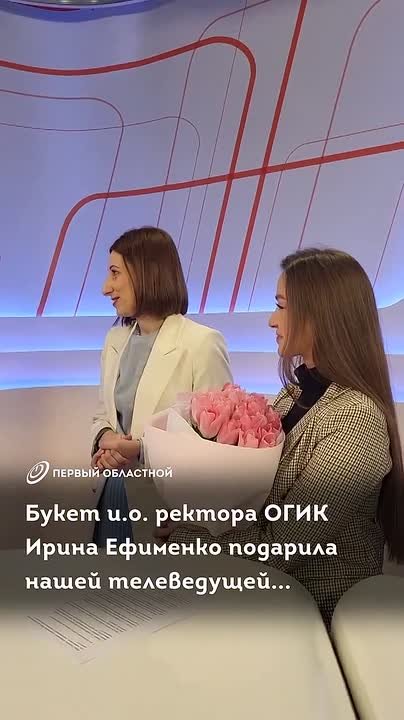 Букет и.о. ректора ОГИК Ирина Ефименко подарила нашей телеведущей Анастасии Гришиной.
