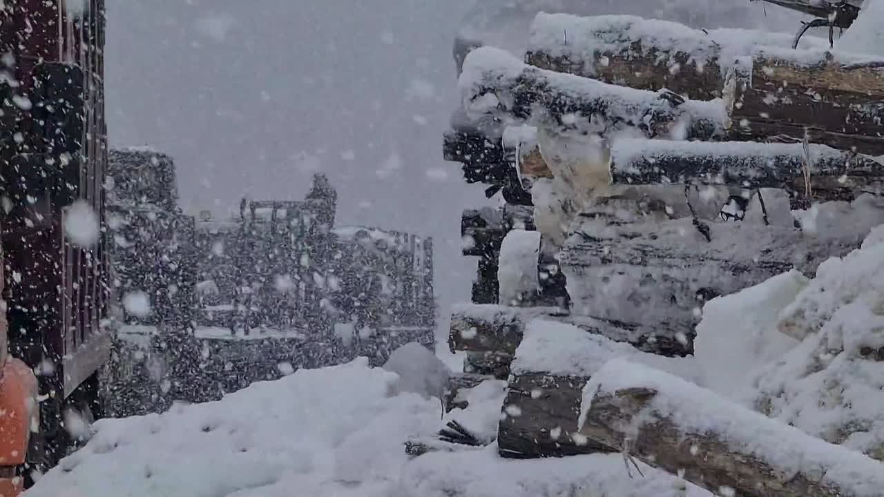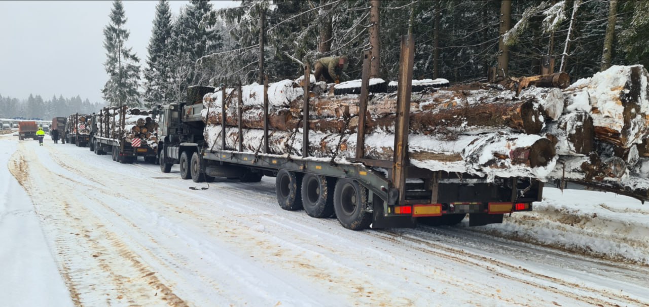 В день, когда формировали первый конвой из Москвы с грузом древесины в помощь фронту, повалил снег. Но это не помешало отправить три трала со 120 кубометрами леса. Они ушли на Донецкое направление, куда планируем поставить 7 тыс. кубометров кругляка.