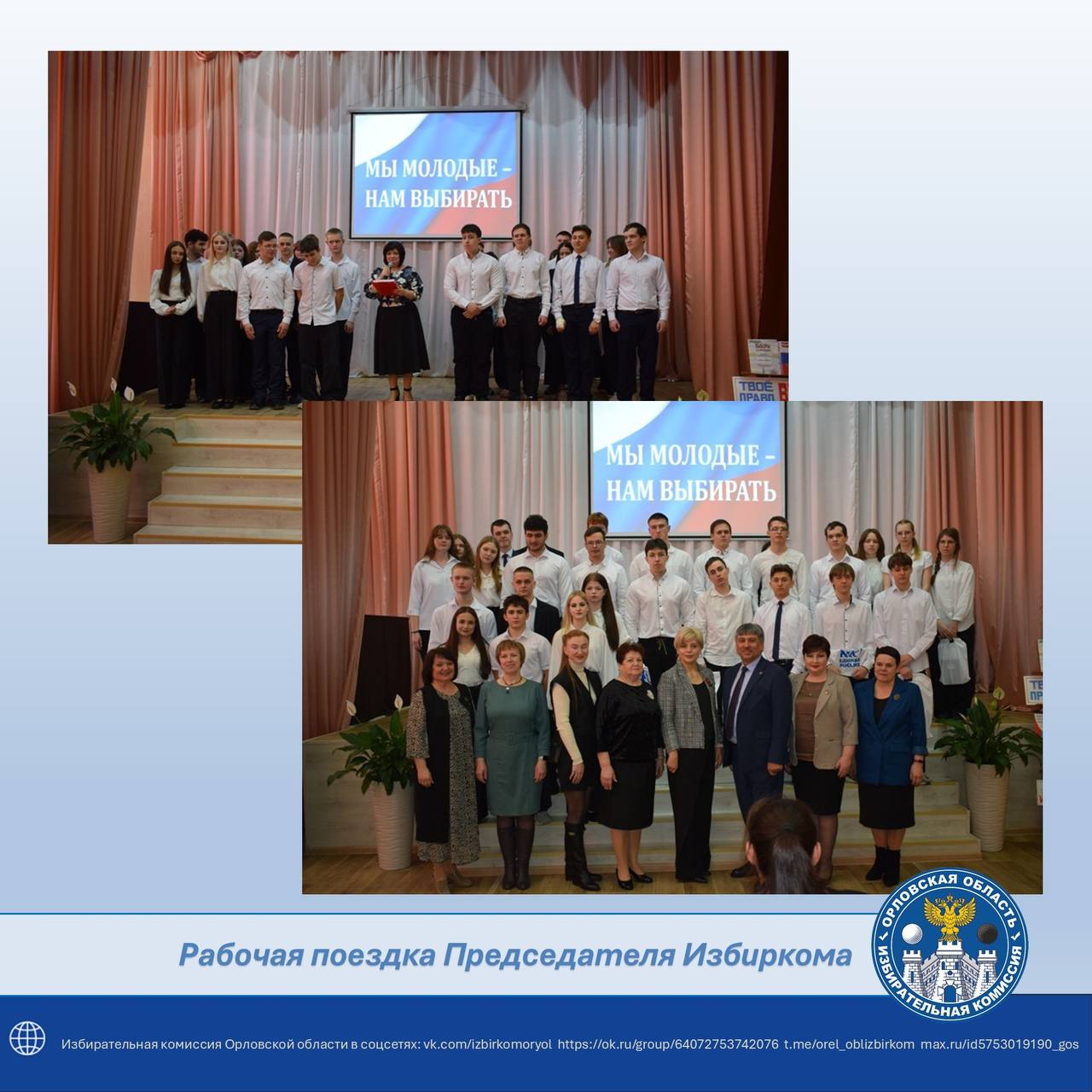 Состоялась рабочая поездка Председателя Избирательной комиссии Орловской области Лилии Пиняевой в Новодеревеньковский район. Там прошло познавательное мероприятие «Посвящение в избиратели», организованное территориальными избирательными комиссиями Краснозоренского и Новодеревеньковского районов. Участниками встречи стали молодые избиратели, для которых этот этап является важным шагом на пути к осознанному участию в политической жизни страны.