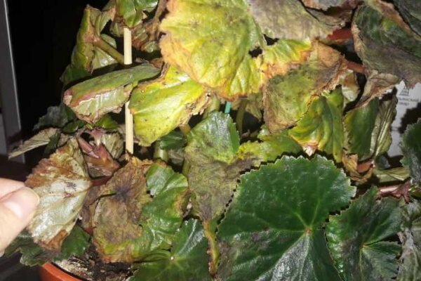 - Пересушенный воздух: бегония не любит сухой воздух. Установка увлажнителей или емкостей с водой поможет восстановить баланс.