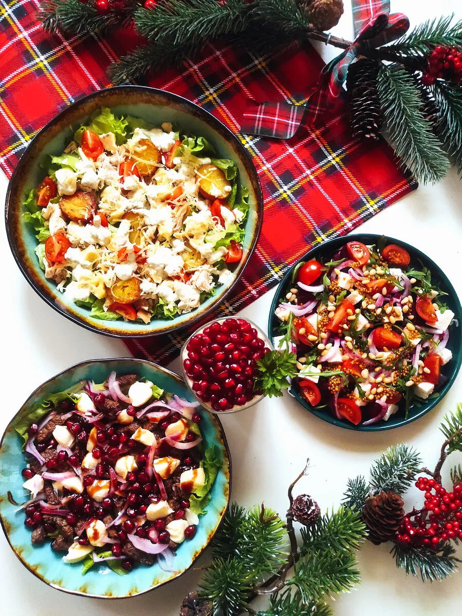 Представляем вашему вниманию три салата, которые будут прекрасно смотреться на любом праздничном столе, добавляя ярких красок и вкусных нот.