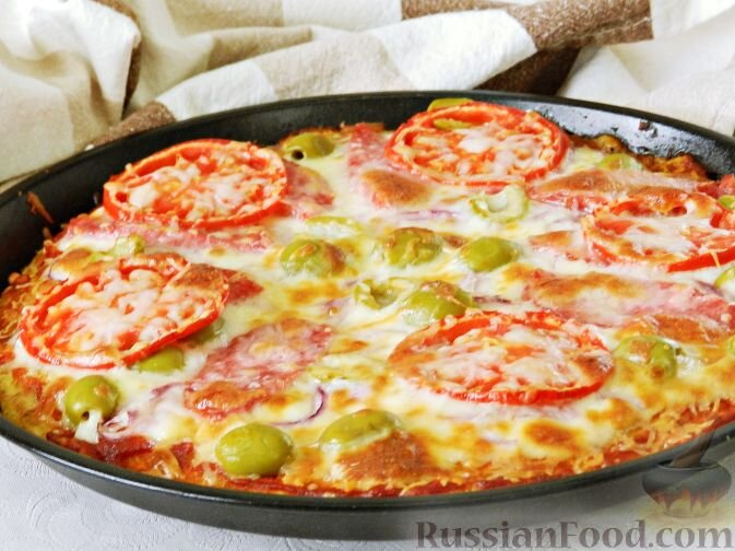 Для смелых кулинаров доступен также рецепт картофельной пиццы. Вместо привычного теста используется тертый картофель, а начинка остается классической: колбаса, помидоры, лук и оливки.