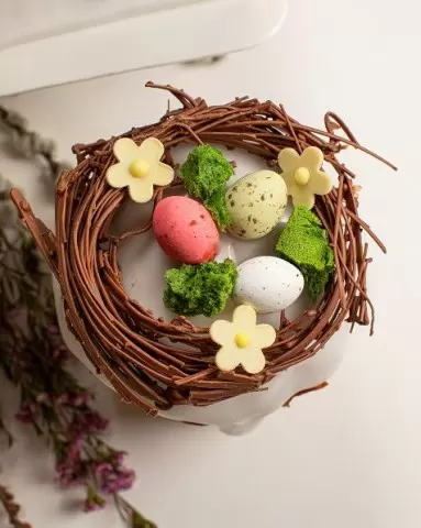 Кондитер Вера Полещук предлагает куличи в тяжелом варианте — по 900 и 1350 граммов. Заказать сладости можно минимум за три дня до праздника, последний день для оформления заказа — 9 апреля. Данный десерт радует пышным тестом, аналогичным панеттоне, с добавлением домашнего цуката из цитрусовых, вишни и изюма. Удивительный акцент придают шафрановый сироп с коньяком и декор из шоколадных гнёзд, красочных яиц и мастичных цветов.