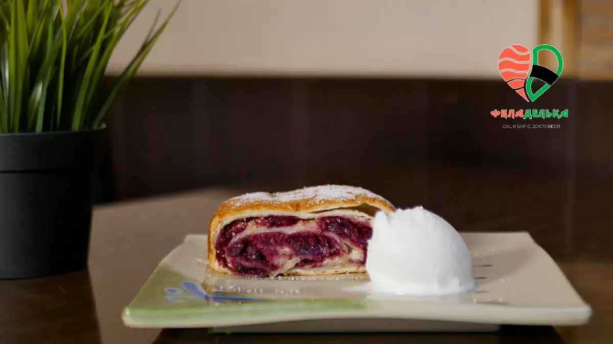 Погружение в мир десертов начинается с ароматного и хрустящего вишнёвого штруделя, который подают с шариком свежего мороженого. Этот кулинарный шедевр способен поразить своим вкусом даже самых требовательных гурманов.