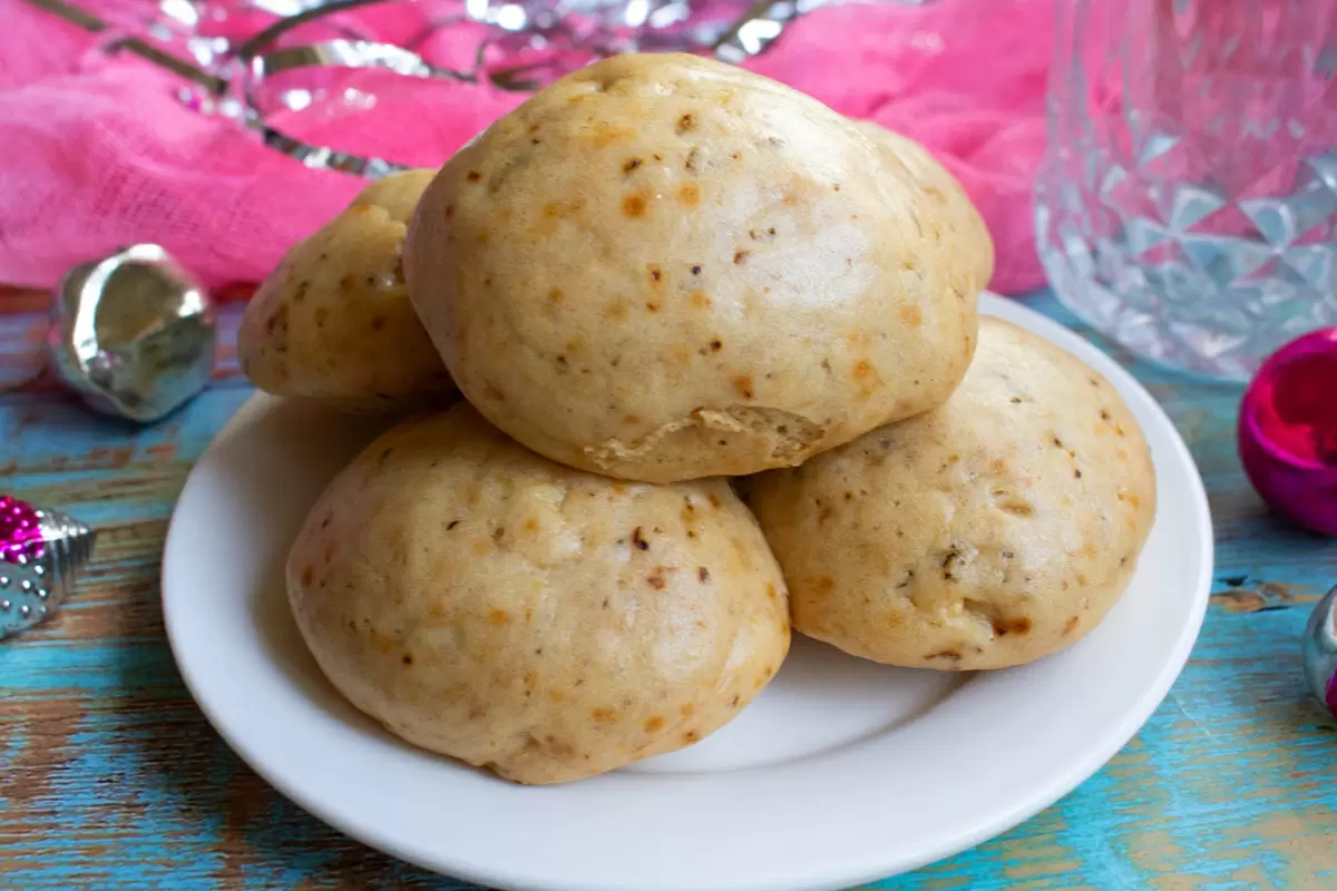 После этого добавьте муку и замесите мягкое тесто. На противень постелите пергамент, смажьте руки водой и сформируйте небольшие шарики из теста. Выкладывайте их на пергамент, оставляя между ними расстояние. Установите лист с пряниками в мантышницу, обернув крышку полотенцем, чтобы предотвратить попадание конденсата. Накройте крышкой и готовьте 25-30 минут.