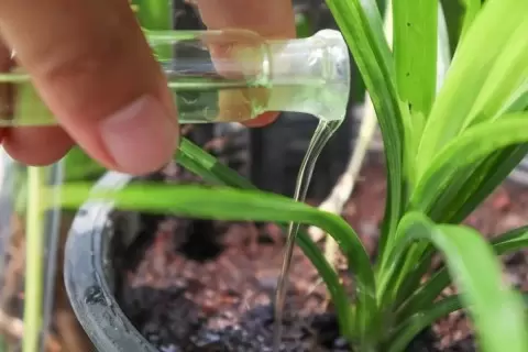 - Полив растений: Янтарная кислота отлично подходит для полива цветочных и овощных культур. Особенно важно поливать растения сразу после пересадки — это поможет им лучше укорениться. При этом желательно готовить более слабый раствор, например, 2 грамма кислоты на литр воды.