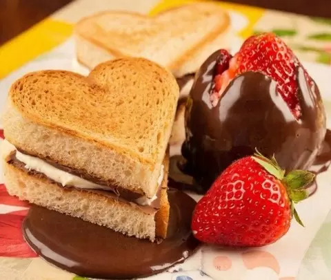 Вырежьте два сердечка из хлеба, обжарьте их, затем положите помидор, сыр и листья салата. Немного подогрейте в микроволновке для идеального эффекта.