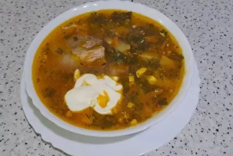 Ингредиенты Вариант с правильной подачей сохраняет баланс: свиные ребра, картофель, щавель, зелень, лук и морковь, томатный компонент и яйца — каждый элемент выполняет роль в одном цельном вкусовом рисунке. Привычный набор превращается в устойчивый базовый рецепт, который можно адаптировать по наличию продуктов.