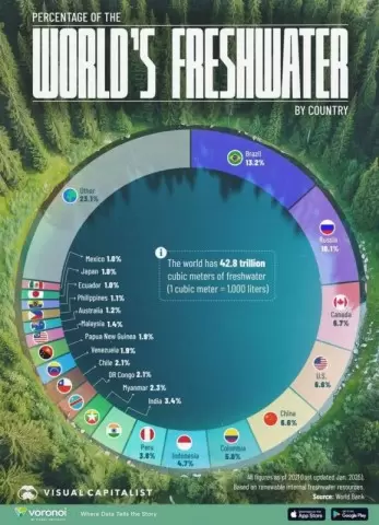 Исследование показывает, что на текущий момент среди стран с крупнейшими запасами пресной воды можно выделить: