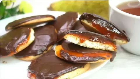 В миске растапливаются шоколад и сливочное масло. Если смесь получится густой — добавляют молоко. После остывания печений следует намазать их джемом, сверху покрыть шоколадом и поместить в холодильник до застывания. Такое печенье прекрасно подходит для вечернего чаепития с семьей!