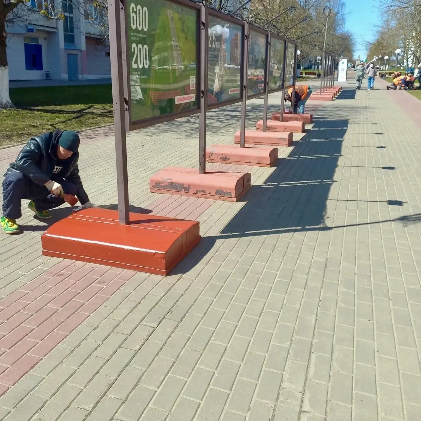 Накануне на бульваре Победы и у стелы «Город воинской славы» специалисты провели покраску бордюров, скамеек и урн.