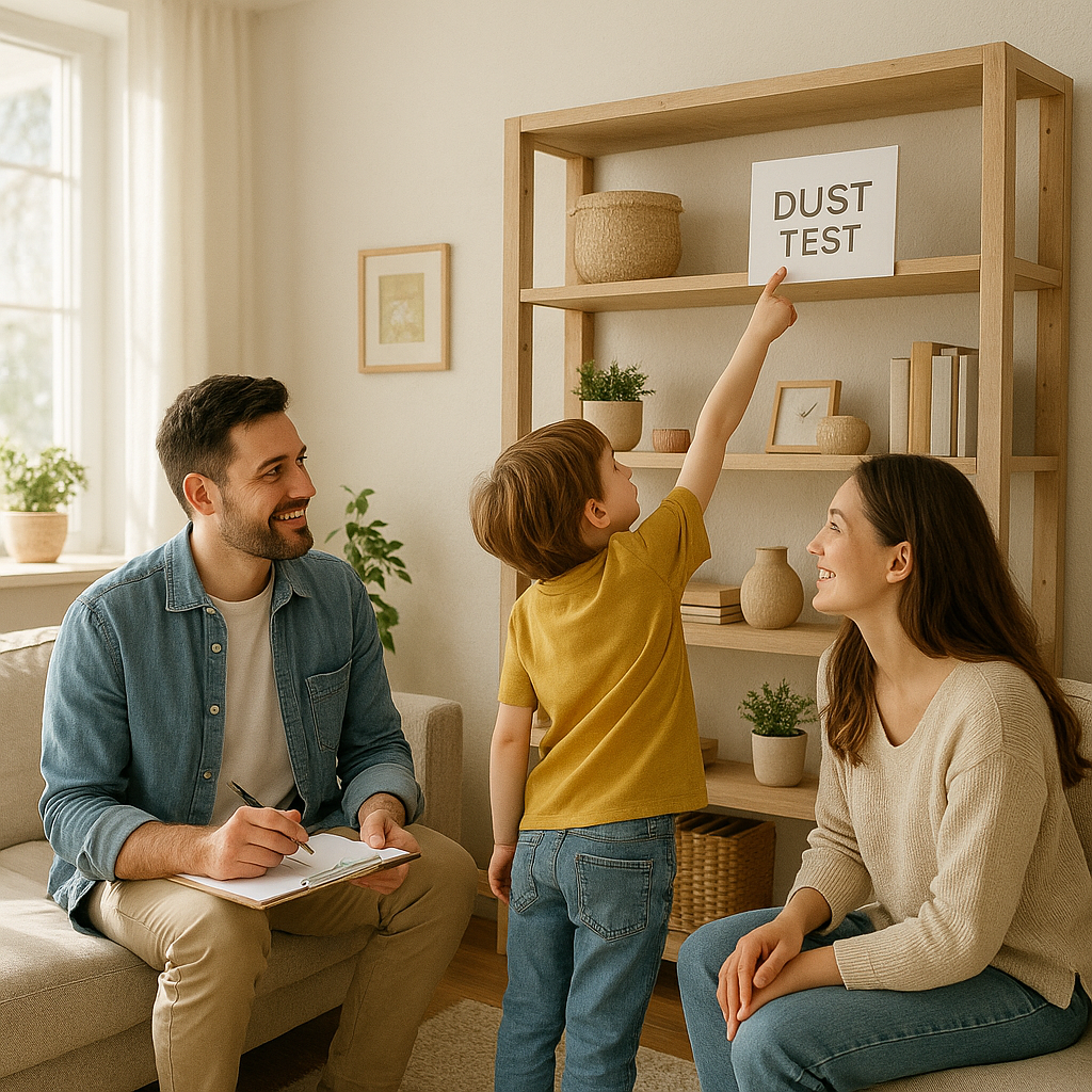 Дополнительно следует проверить: работает ли вентиляция (лист бумаги к решётке) и нет ли плесени в углах и ванной. Замечать, как себя чувствуют большинство семейных питомцев, тоже полезно. Если они стали часто чесаться или искать свежий воздух у окна, это может быть признаком проблем с чистотой воздуха.