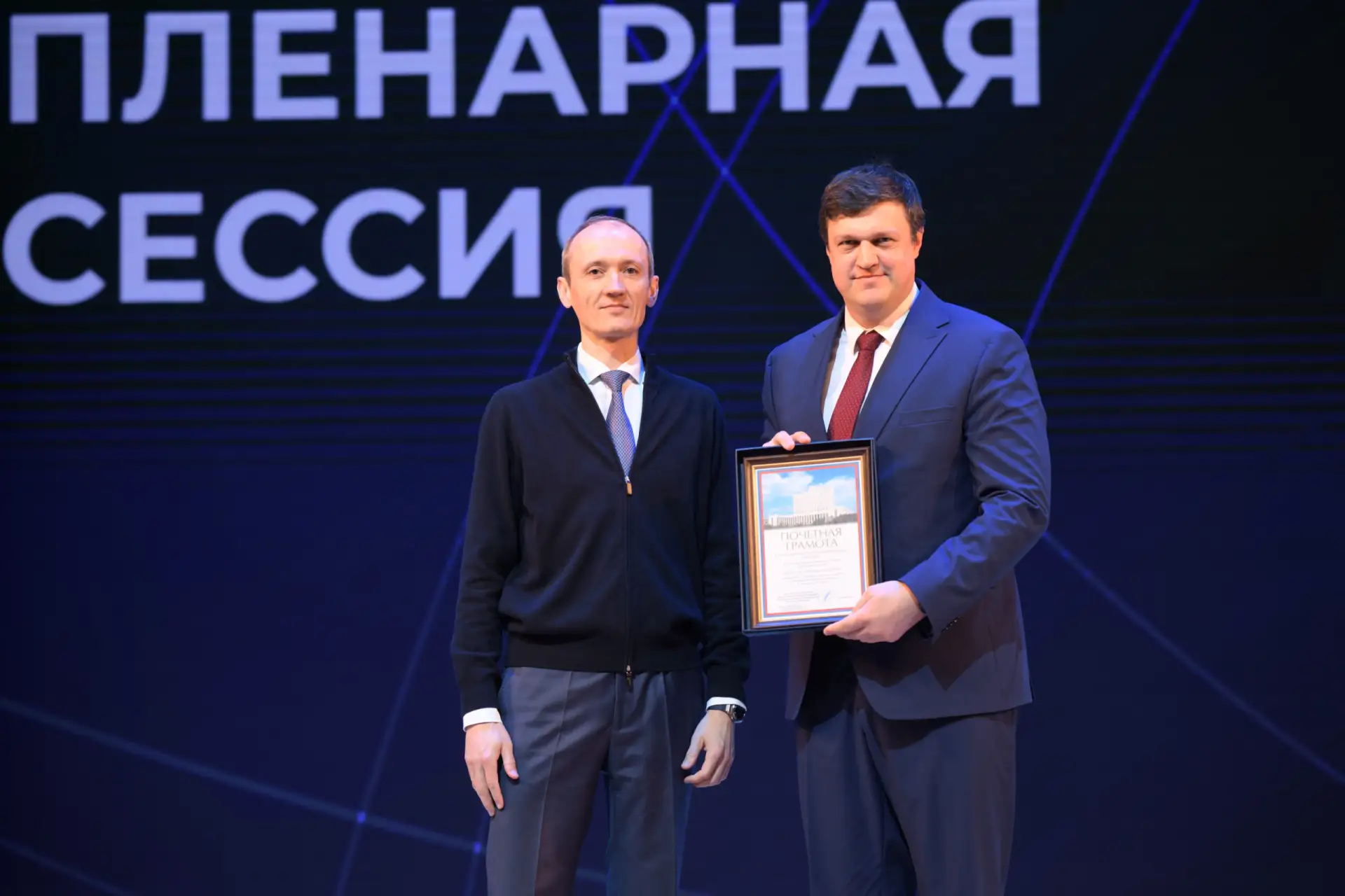 На I Всероссийском форуме «Государство для людей» зампредседателя Правительства России Дмитрий Григоренко вручил Почетную грамоту замгубернатора Орловской области по социальной политике Алексею Берестову.