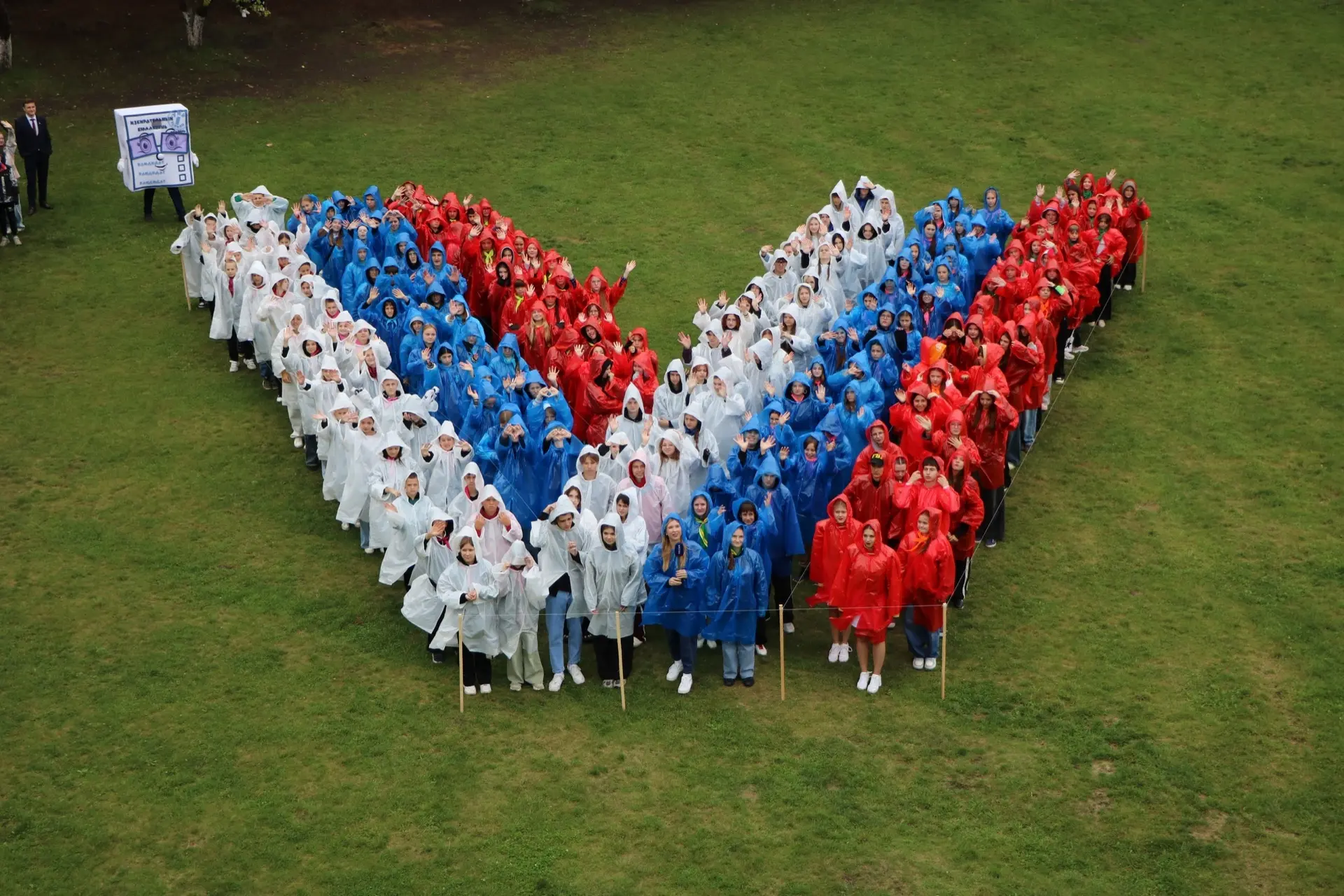 В формировании фигуры, выполненной в цветах государственного флага Российской Федерации, приняли участие 210 человек. Для каждого из ребят день участия в составлении «Галочки» стал особенным: они установили рекорд и по праву гордятся своей причастностью к столь значимому событию.